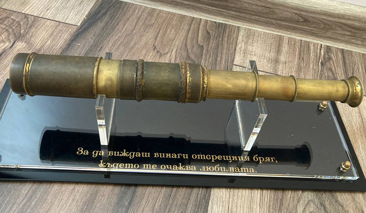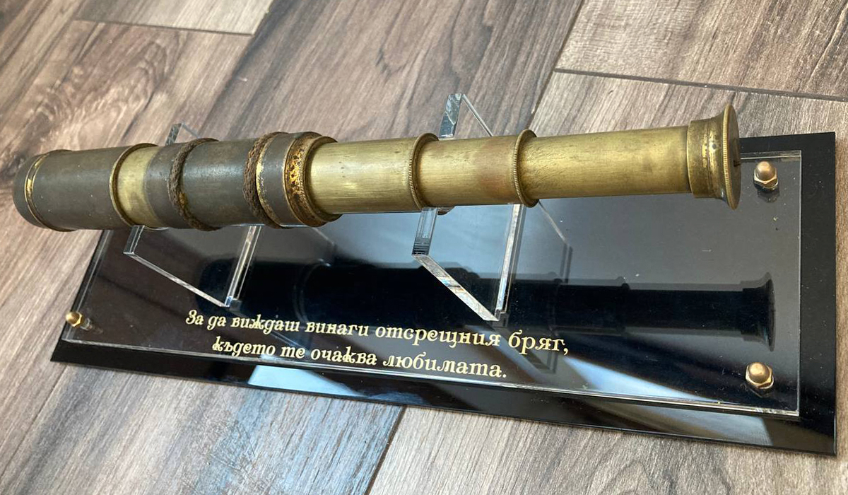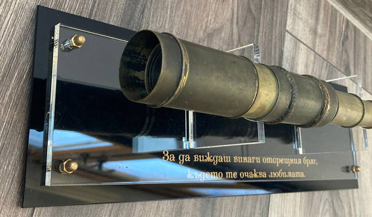 Изработка на стойка за Далекоглед от 1860 г. със сито печат за текста и месингови крепежи (болче и гайка).