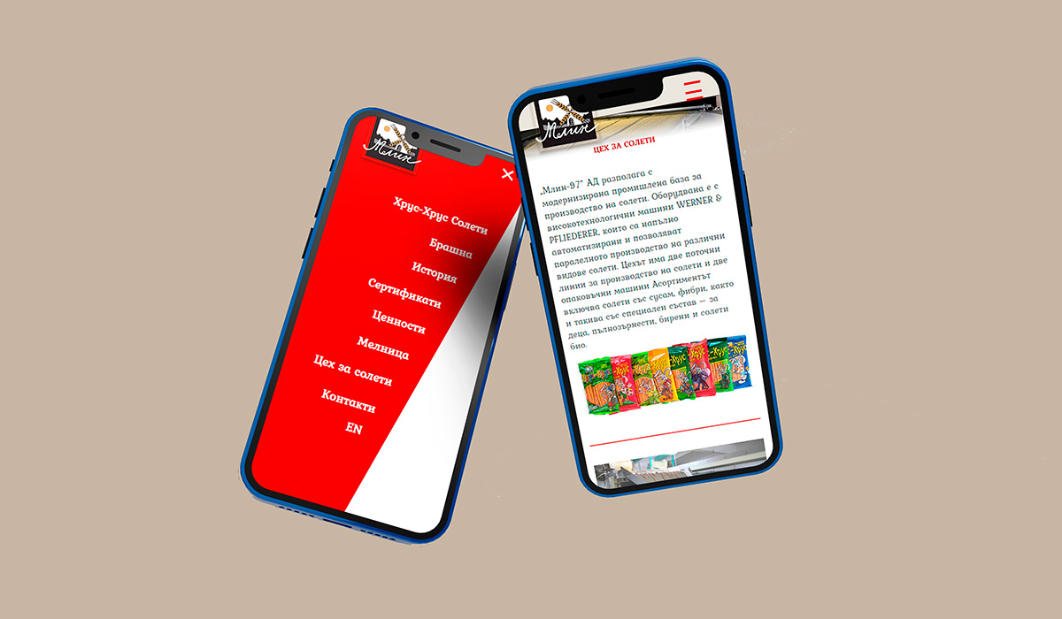 „Млин-97” АД е създадена с концепцията за модерна компания в хлебната промишленост. Сайта дава информация за процеса и етапите на създаване на така любимите на поколения солети "Хрус-хрус".